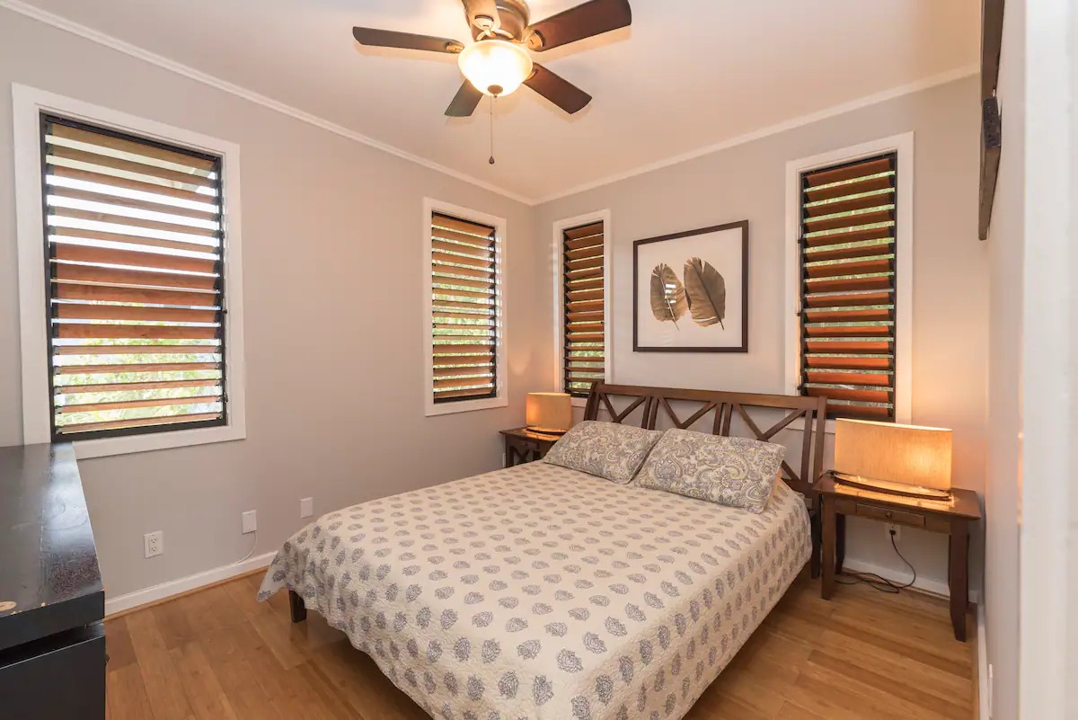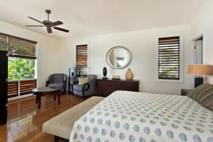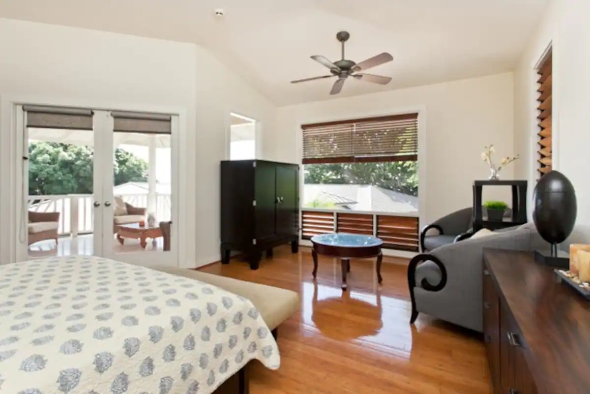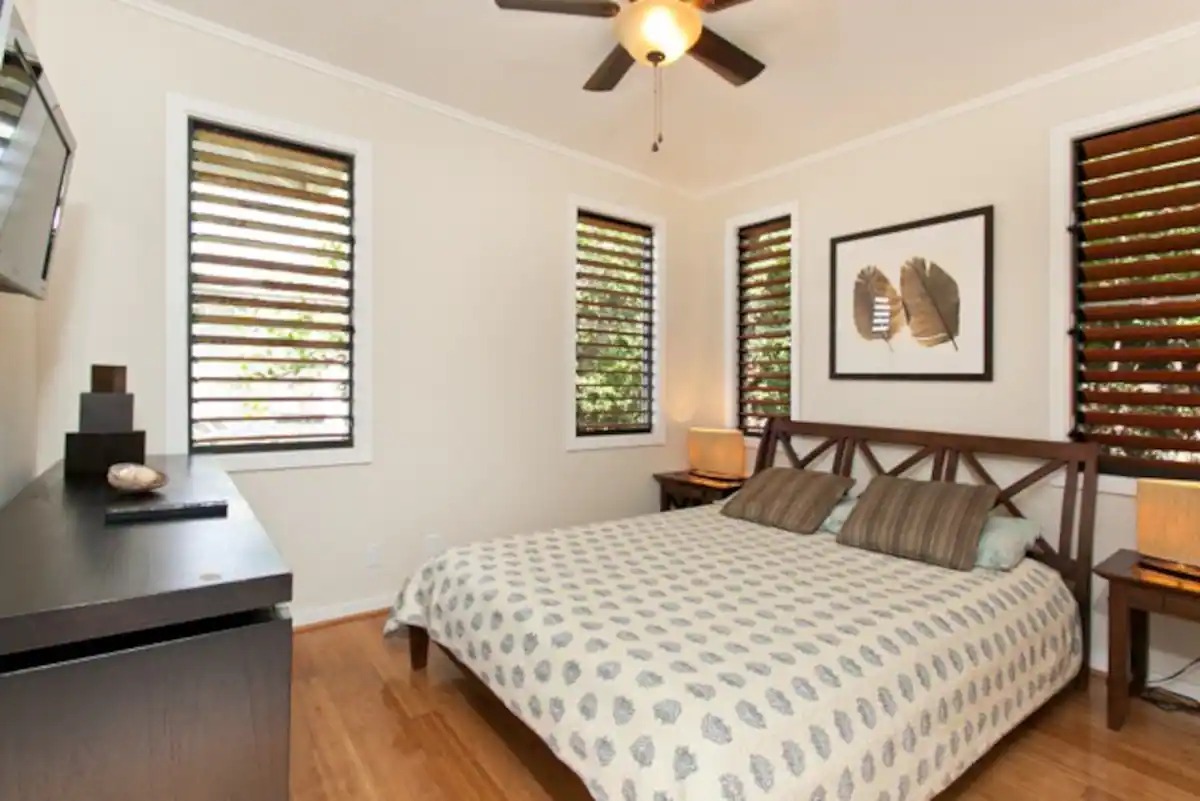 The property is spacious and beautifully decorated with 2 Queen size beds, couches, and a beautiful lanai where guests can peak at the ocean and watch the fireworks every friday night.